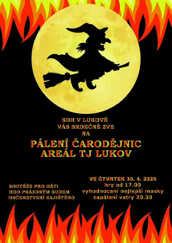 Pálení čarodějnic - pořádá SDH Lukov v areálu TJ